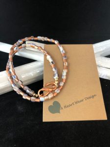 Each piece of HeartWear is made by me and then infused with the energy of living crystals. This piece of wearable art has the energy of selenite infused into it.
